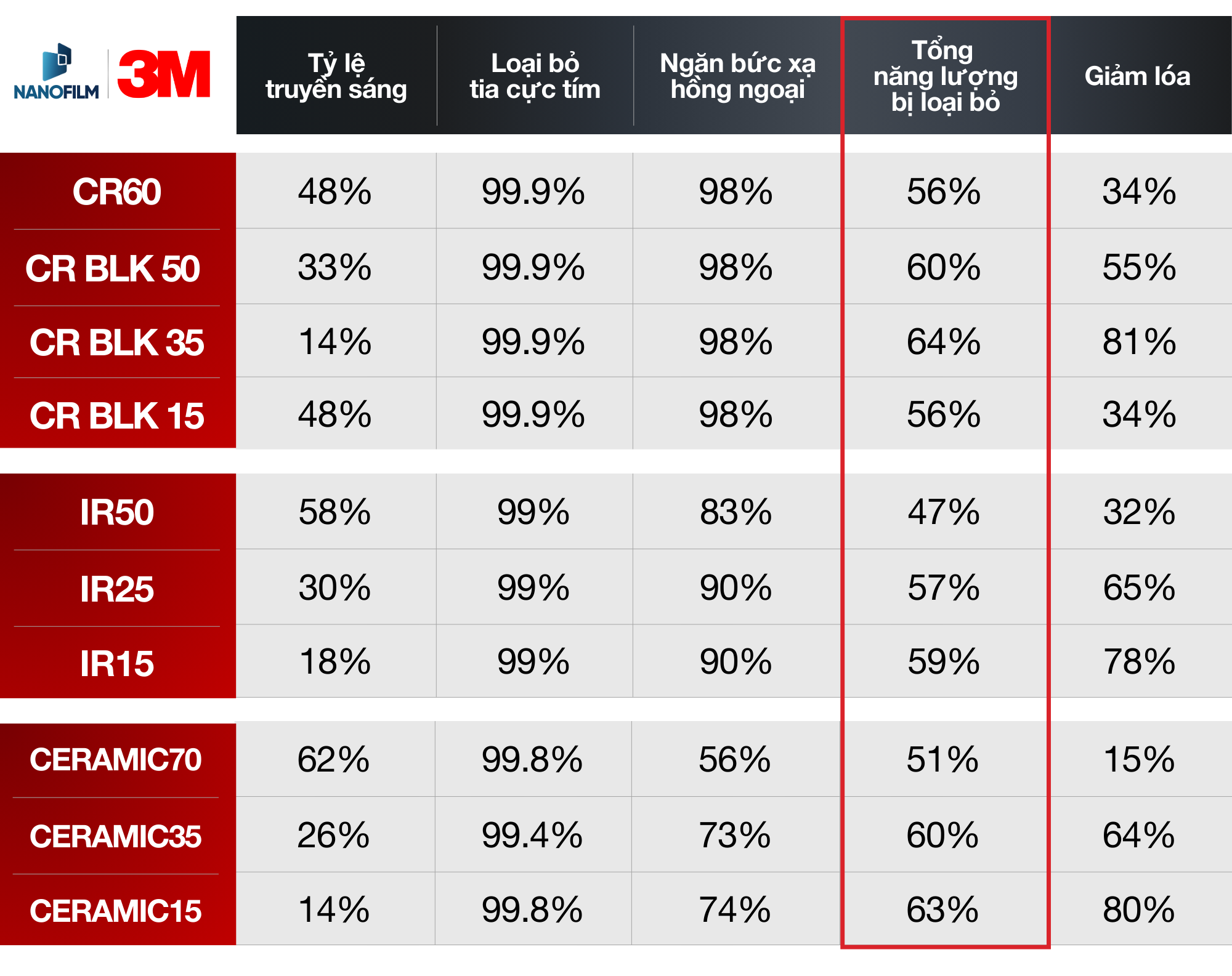 Bảng giá & thông số phim cách nhiệt 3M