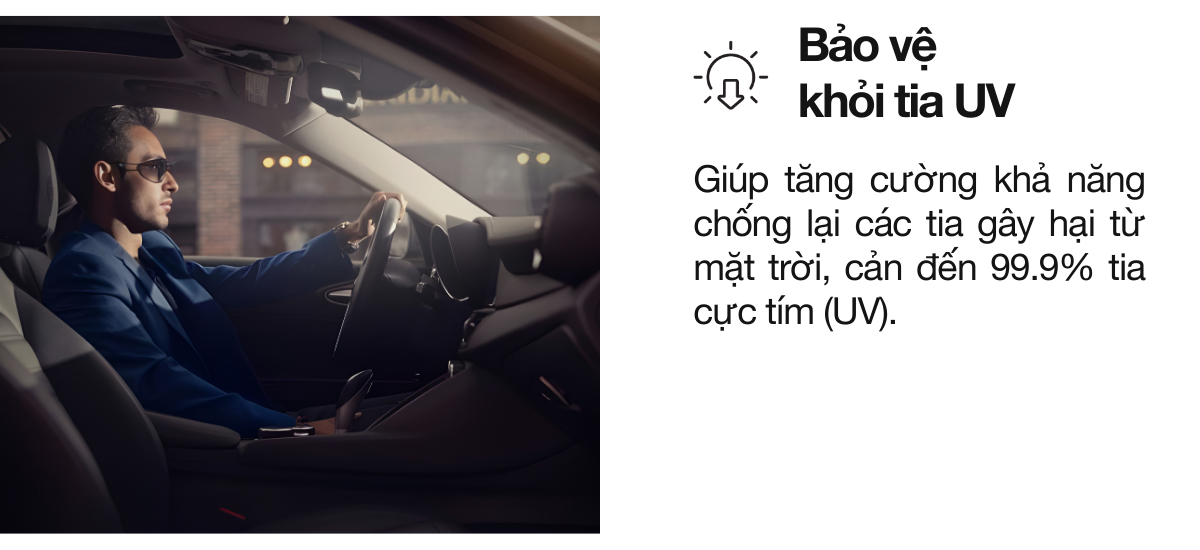 Với cấu trúc 200 lớp nano mỏng hơn cả một tờ giấy Post-it®, dòng phim CR BLK vừa duy trì độ trong quang học vượt trội vừa sở hữu dải màu đen. Sự kết hợp giữa hiệu năng quang học và kiểm soát nhiệt mạnh mẽ giúp khoang xe mát hơn, dễ chịu hơn trong mọi điều kiện nắng nóng.